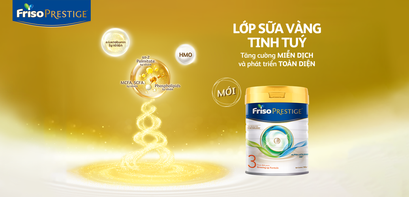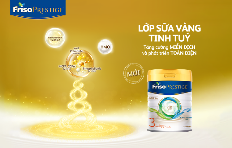 Sữa Friso Prestige® chắt chiu lớp sữa vàng tinh túy, giúp bé Tăng cường miễn dịch và Phát triển toàn diện.