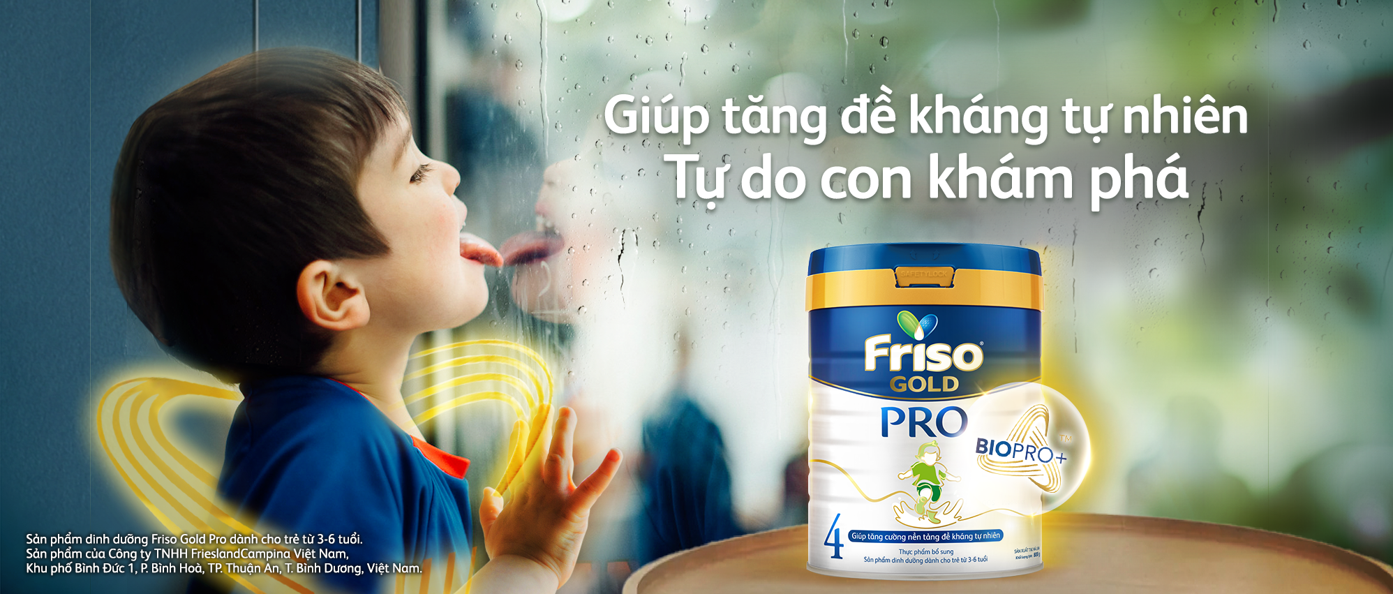 70% khả năng miễn dịch của bé nằm ở đường ruột. Vậy nên hệ vi sinh đường ruột chính là nền tảng đề kháng tự nhiên giúp cơ thể bé chiến đấu chống lại mầm bệnh. Chính vì sức khoẻ đường ruột quan trọng như vậy, Friso đã nghiên cứu đưa vào Friso Gold Pro mới có BioPro+, giúp bổ sung lợi khuẩn, cho đường ruột khỏe, nhờ đó tăng cường nền tảng đề kháng tự nhiên cho bé tự do khám phá.